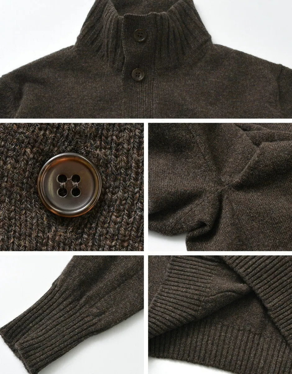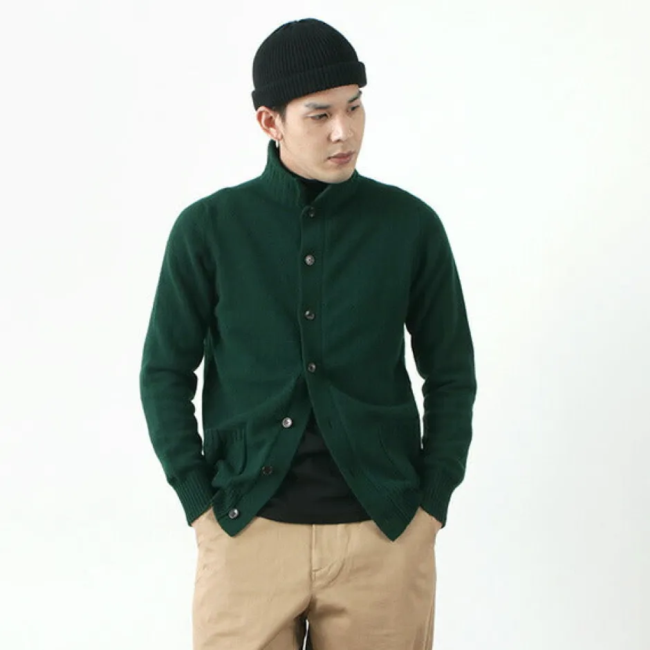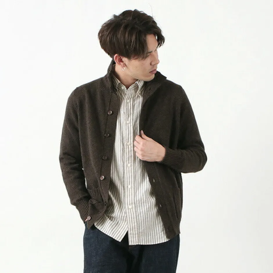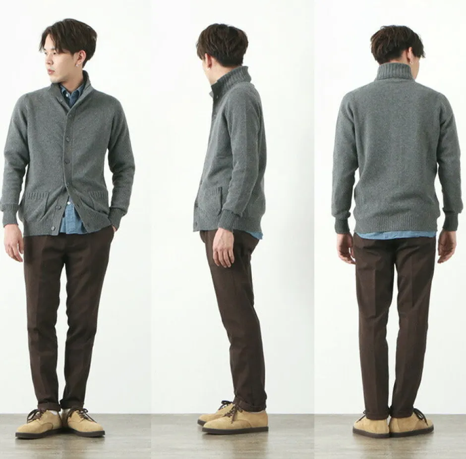 Scotland’s oldest knitwear WILLIAM LOCKIE is a brand of knitwear that has been around for a long time. This cardigan is made from 100% lambswool, a precious material. This cardigan has a beautiful slim silhouette that can be easily layered and is ideal for those who do not like stiff knitwear. The turtleneck design gives it a more mature look than a standard cardigan. This cardigan can be worn as a jumper or as a cloak, depending on how you unbutton the buttons. Soft and warm fabric