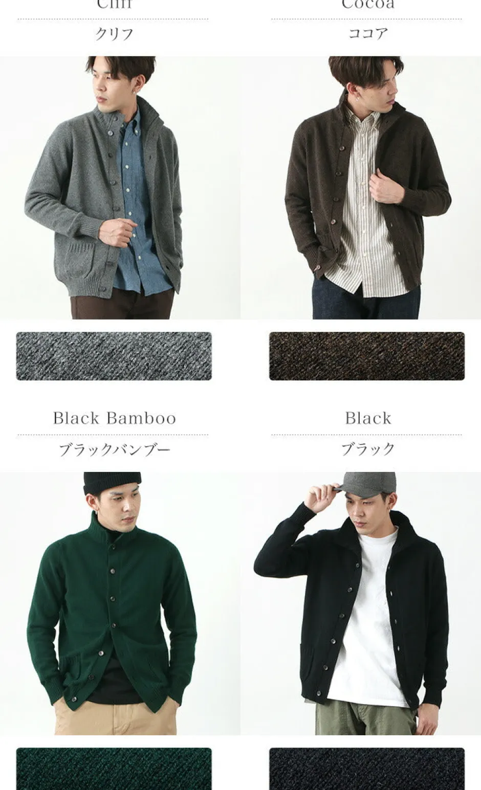 A cardigan for adults that can be worn any way you likeWILLIAM LOCKIE, a long-established Scottish knitwear brand, introduces a cardigan that creates a seasonal mood. This luxurious cardigan is made from 100% precious lambswool. This cardigan has a beautiful slim silhouette that is easy to layer and is great for those who don’t like stiff knitwear. The turtleneck design gives it a more mature look than a standard cardigan. It can be worn as a jumper or as a jacket, depending on how you unbutton the buttons. The soft and warm fabric is made from 100% lambswool. Lamb’s wool is made from lambs less than 6 months old. The fibres are much finer than those of ordinary wool, which gives it a softness and lightness without pricking. It has a medium thickness and is perfect for keeping warm in the middle of winter.