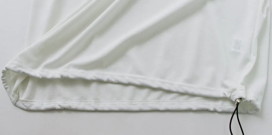 The wide width of the body does not cling to the skin, improving the dry feeling of the garment. It is also great for covering up your body shape. The drawcord at the hem allows you to change the silhouette of the garment.