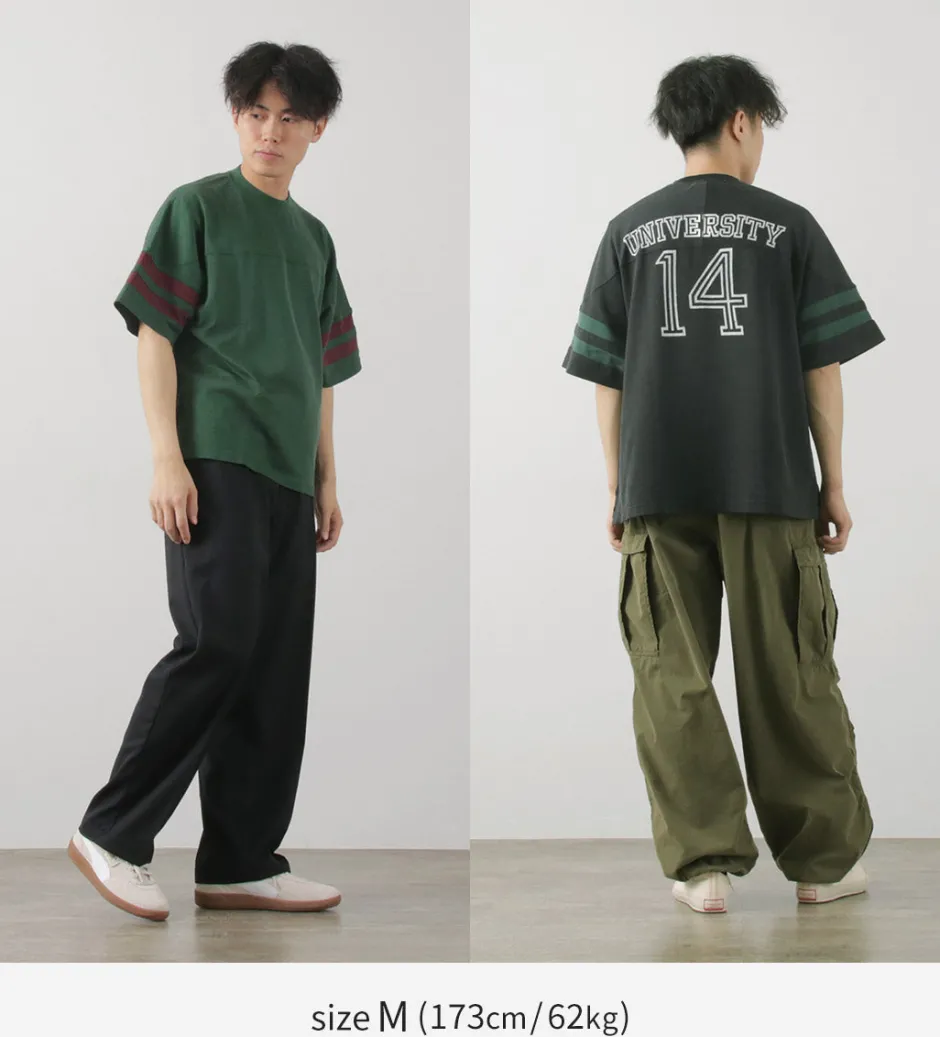 A slightly longer short sleeve for a relaxed style. The numbering and same-color lines are sewn with a separate fabric, adding a detail that’s perfect for casual wear without being too rugged.