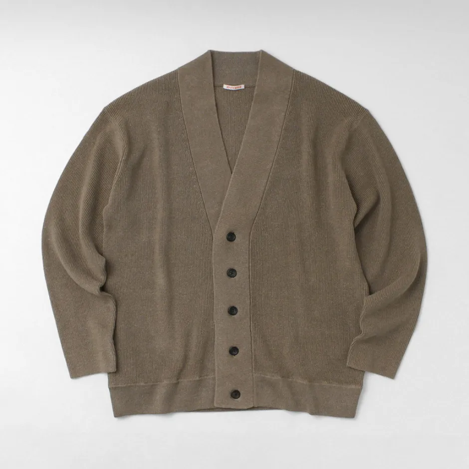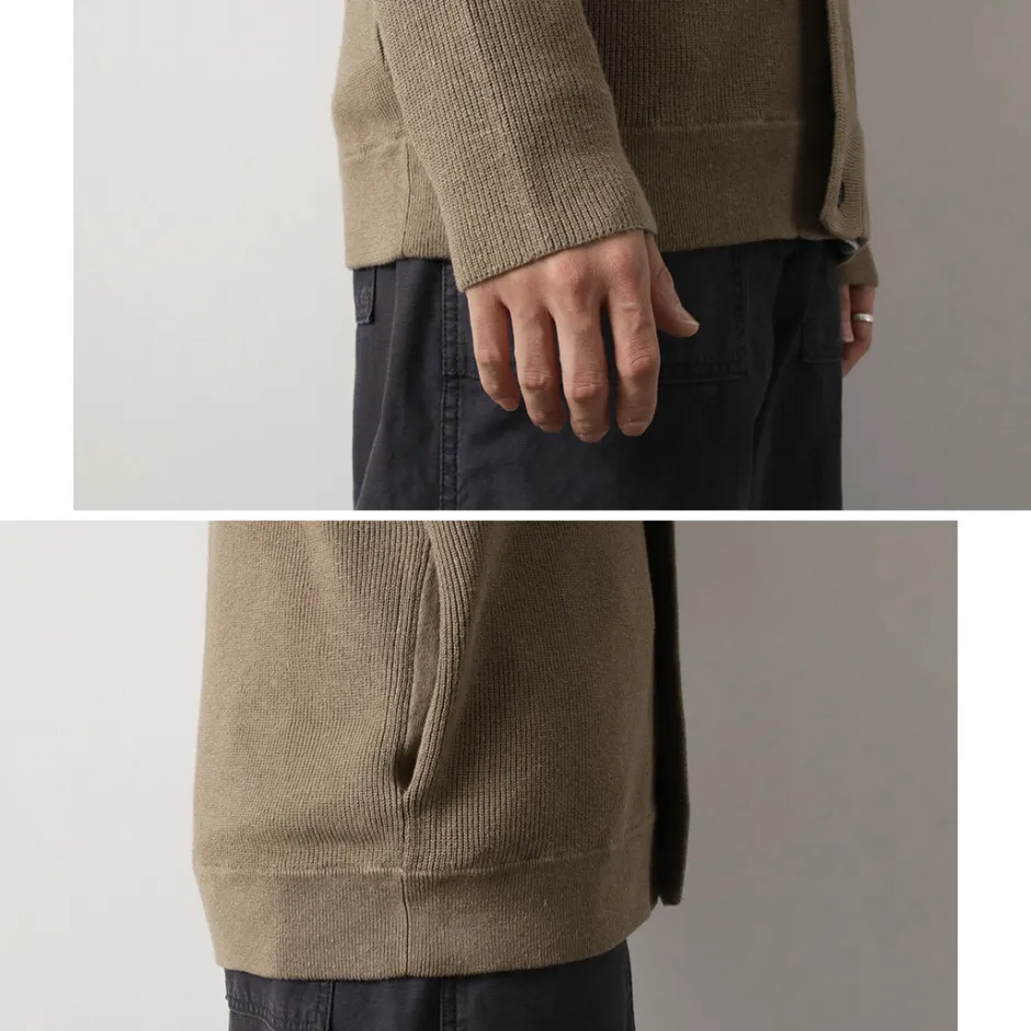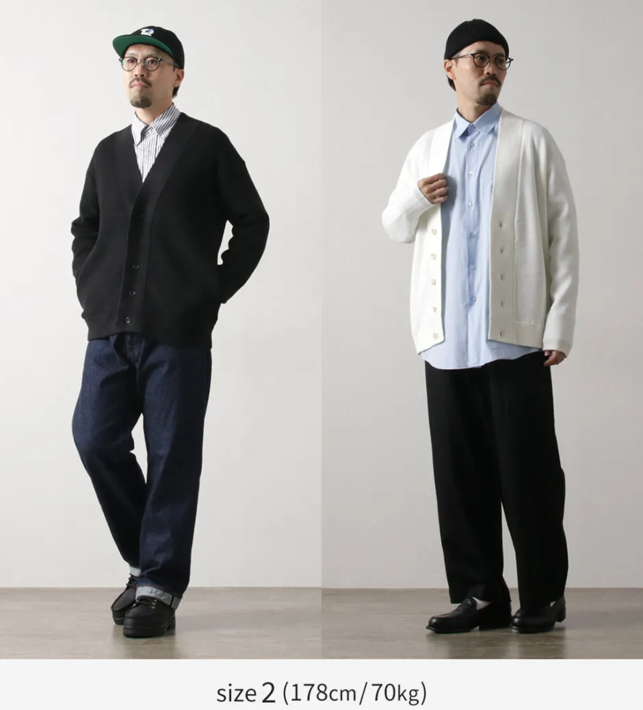 This cardigan, with its wide front placket and ribbed edges, adds a sense of openness to your styling simply by throwing it on. When worn with the buttons open, the front naturally falls, making it a cardigan that you can throw on with a relaxed atmosphere.