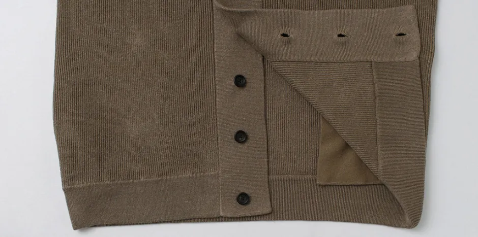 The ribbing on the front placket is slightly wider, allowing the front to drape nicely when worn open, providing a light and stylish look.