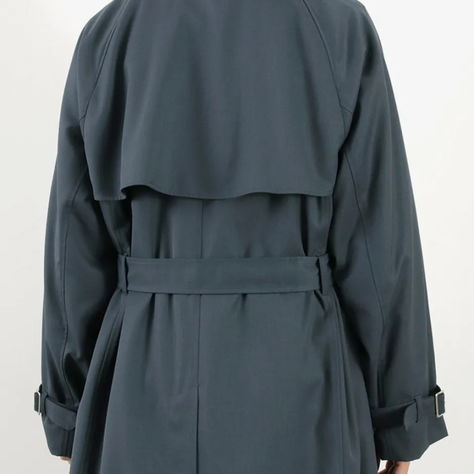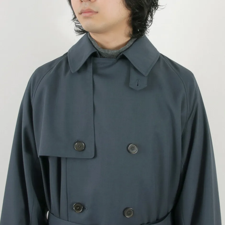 Introducing a double-breasted trench coat made of elegant wool gabardine. The fabric is characterized by its sturdy and relaxed feel, and the classic trench coat is finished in an oversized silhouette that does not lose its balance.