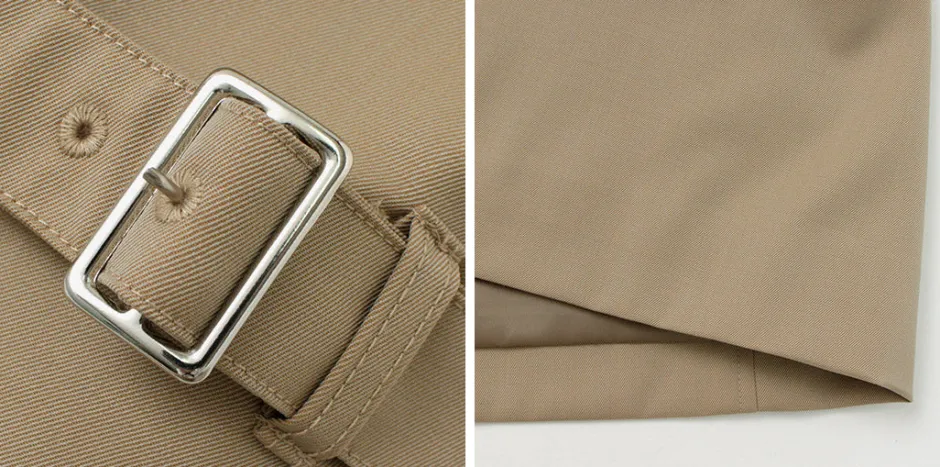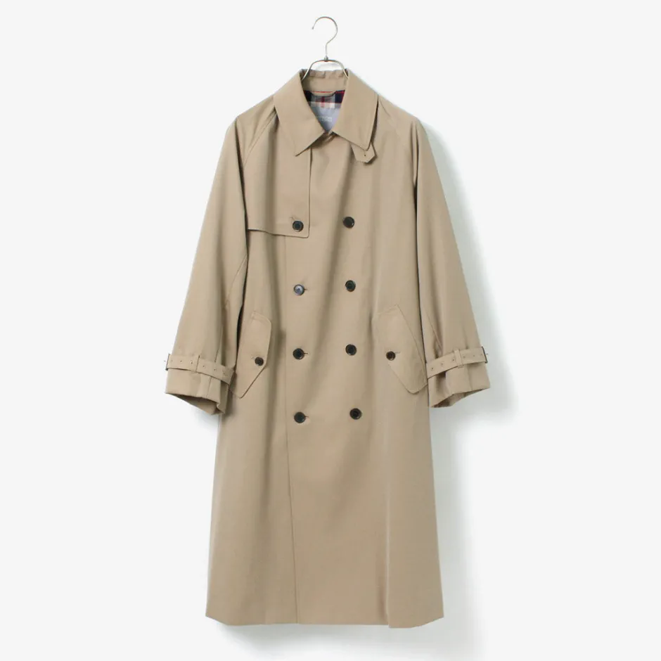 The fabric is characterized by a sturdy and relaxed feel, and the classic trench coat is finished in an oversized yet well-balanced silhouette.