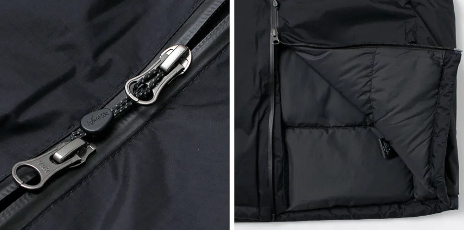 To address the weakness of down when exposed to water, NANGA uses “AURORA-TEX,” a highly waterproof yet breathable material. This fabric features a microporous polyurethane waterproof coating, delivering excellent breathability, insulation, and water repellency.