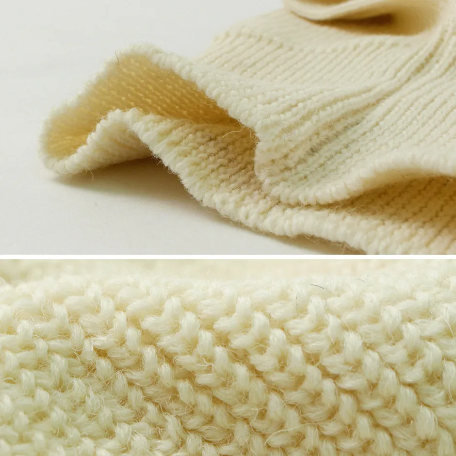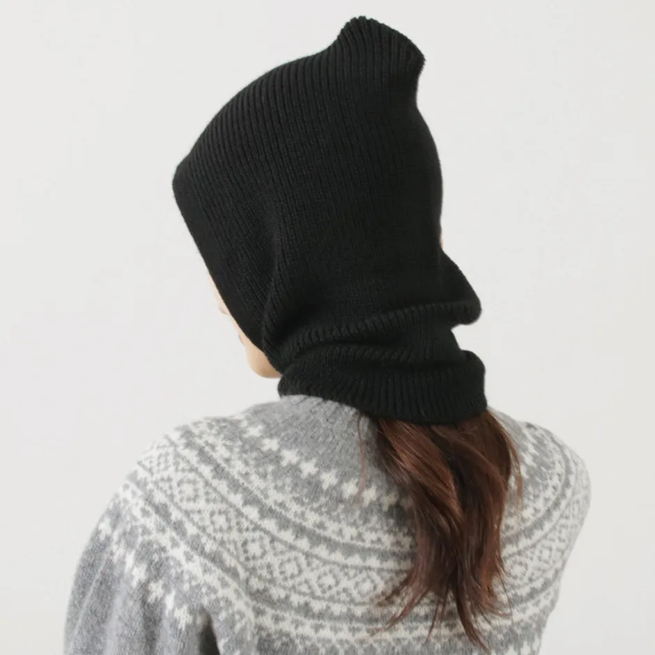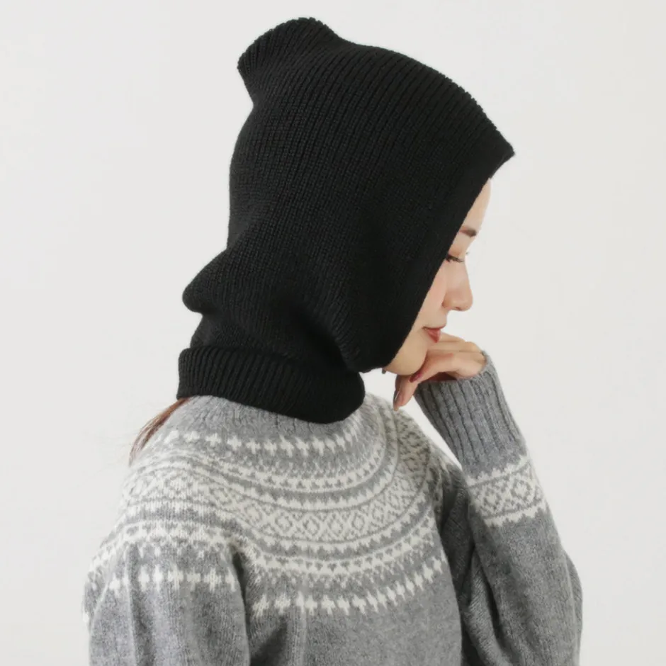 This balaclava features a knit fabric made of rare British wool and a simple design that can be worn with any outfit. It is a must-have item for winter, adding not only protection from the cold but also a subtle touch of sophistication by simply adding it to your regular coordinate.