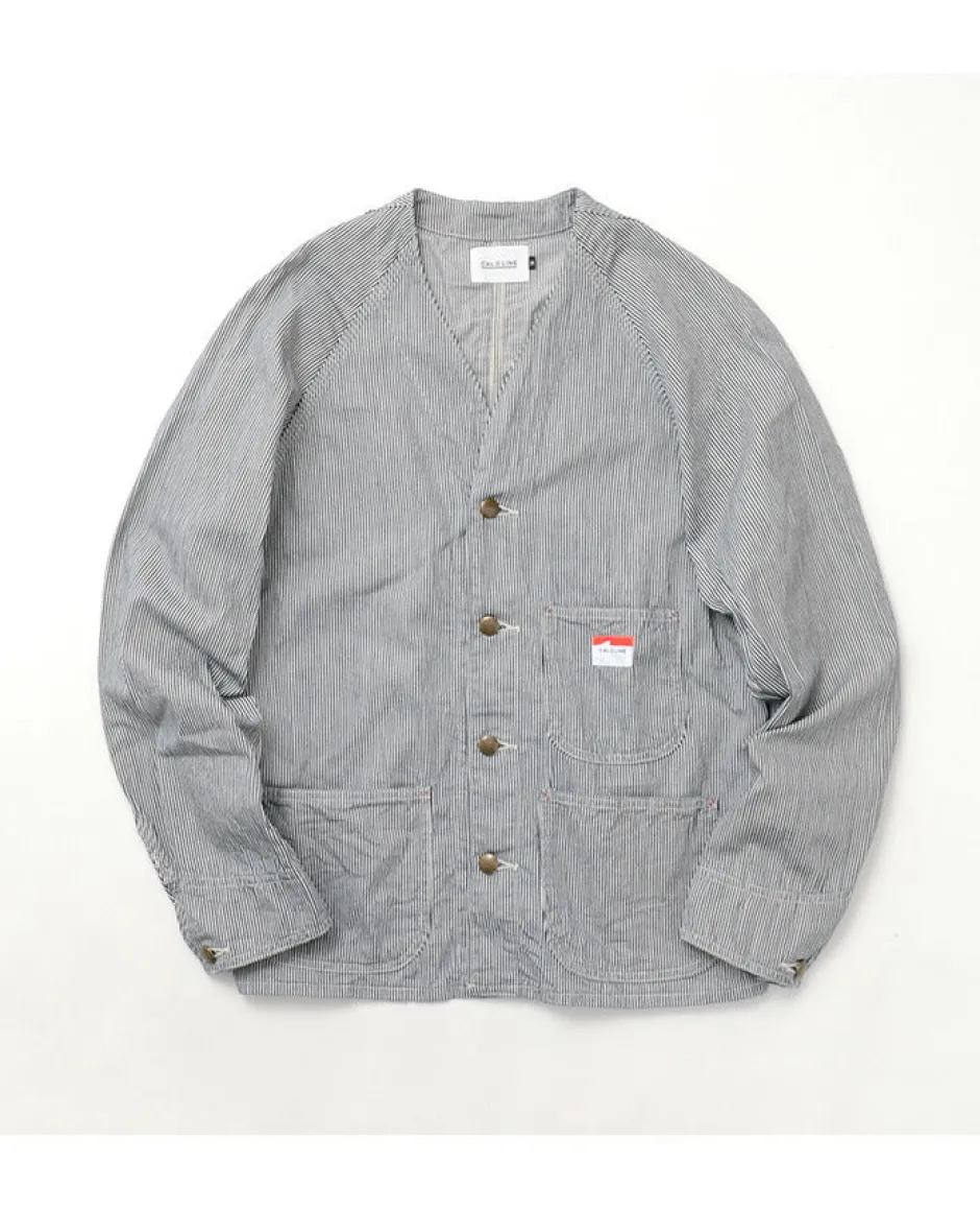 A modern take on the 60’s engineer jacket. A modern silhouette with a hickory pattern reminiscent of the workers of that era. The light ounce cotton material is perfect for wearing as a cardigan in early spring. The jacket is made of light-weight cotton and is perfect for wearing as a cardigan in early spring. The roots of the engineer’s jacket: as the name suggests, it has its roots in the work clothes of engineers working in factories. The collar is omitted and the length is shortened for maximum ease of movement. The slightly boxy silhouette makes it easy to match with cut-and-sewn shirts, making it the perfect jacket to just throw on.