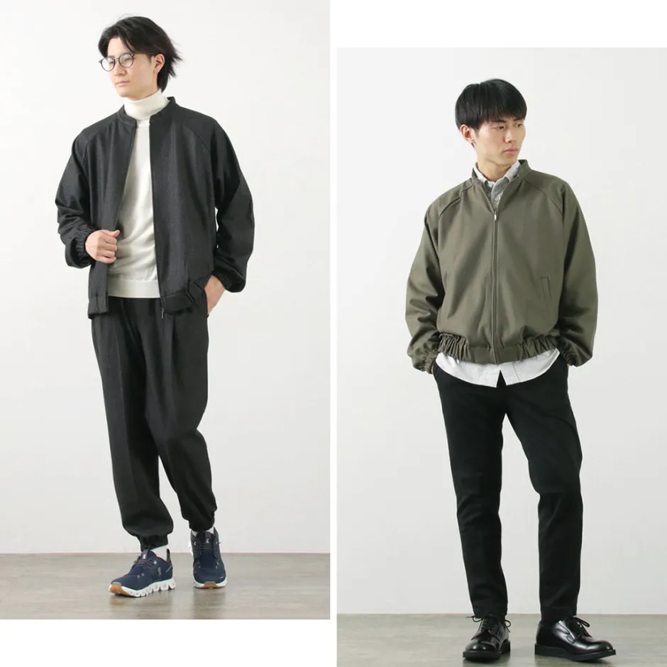 Unlike the usual dog ear collar, it features a lower stand collar around the neck. This design offers a neat appearance around the neck, maintaining a smart impression while keeping a casual touch. The use of raglan sleeves around the shoulders ensures ease of movement and a stress-free wearing experience.