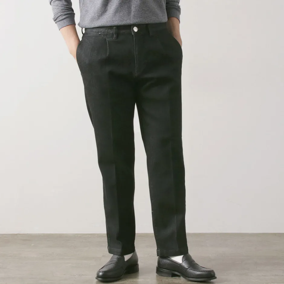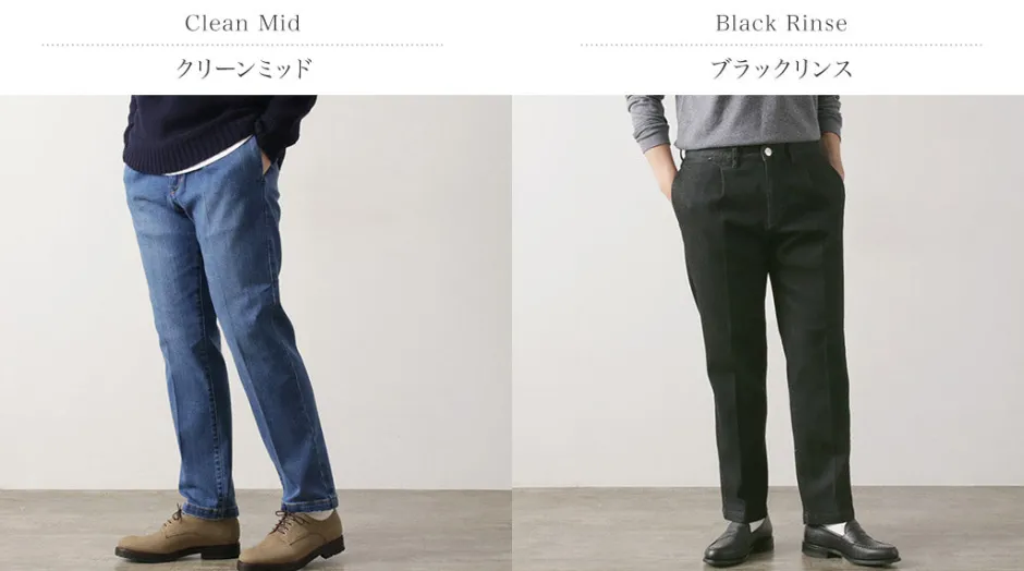 Center Press finish and the pattern design are meticulously crafted to enhance the wearer’s appearance, with a moderate taper towards the hem. All these elements combine to create a denim that is perfect for a neat and casual adult style.