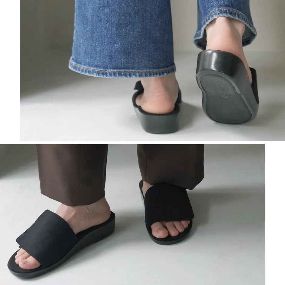 All parts that touch the foot are made of suede-like artificial leather. The extremely soft and smooth texture is sure to become addictive the moment you put it on. We highly recommend trying them on bare feet.