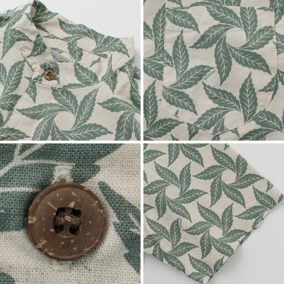 GOHEMP introduces a band collar shirt featuring the brand’s original all-over patterned fabric.