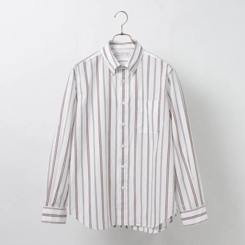 This shirt is made of 100% Supima cotton, which is characterized by its soft texture and firmness. The pattern is a random stripe that is not too assertive, making it an item that can be used as an inner layer for a jacket or as a mainstay of a coordinate with just one piece in spring.