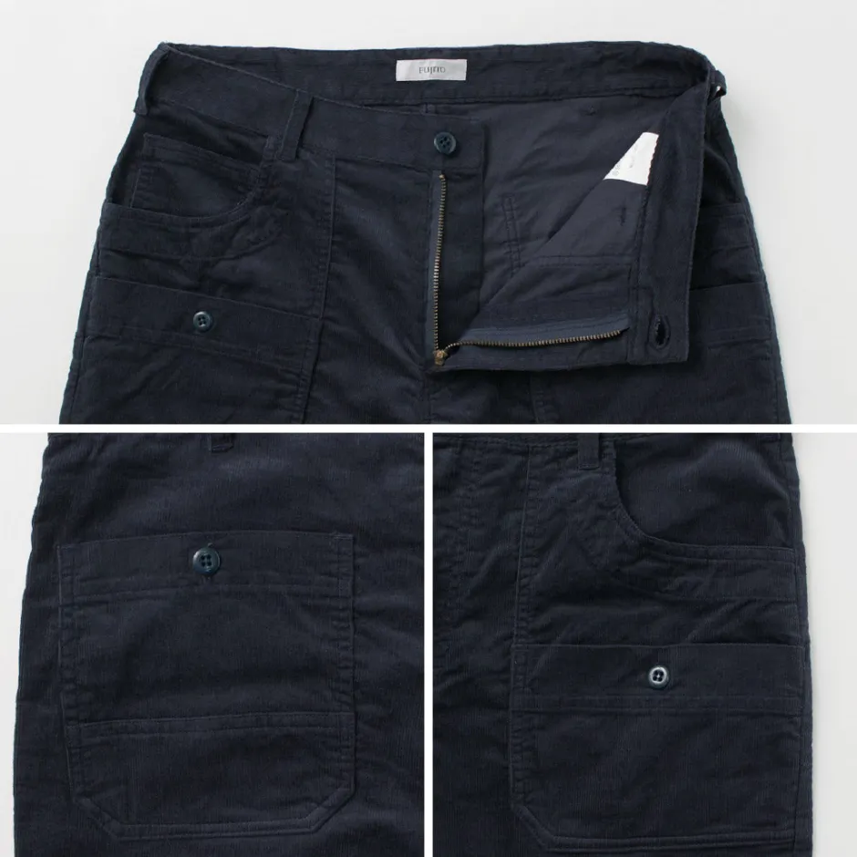 Featuring a slightly narrow width and slightly shorter length, it creates a sleek bottom style. The soft texture exudes the refinement unique to corduroy, adding a sophisticated vibe.