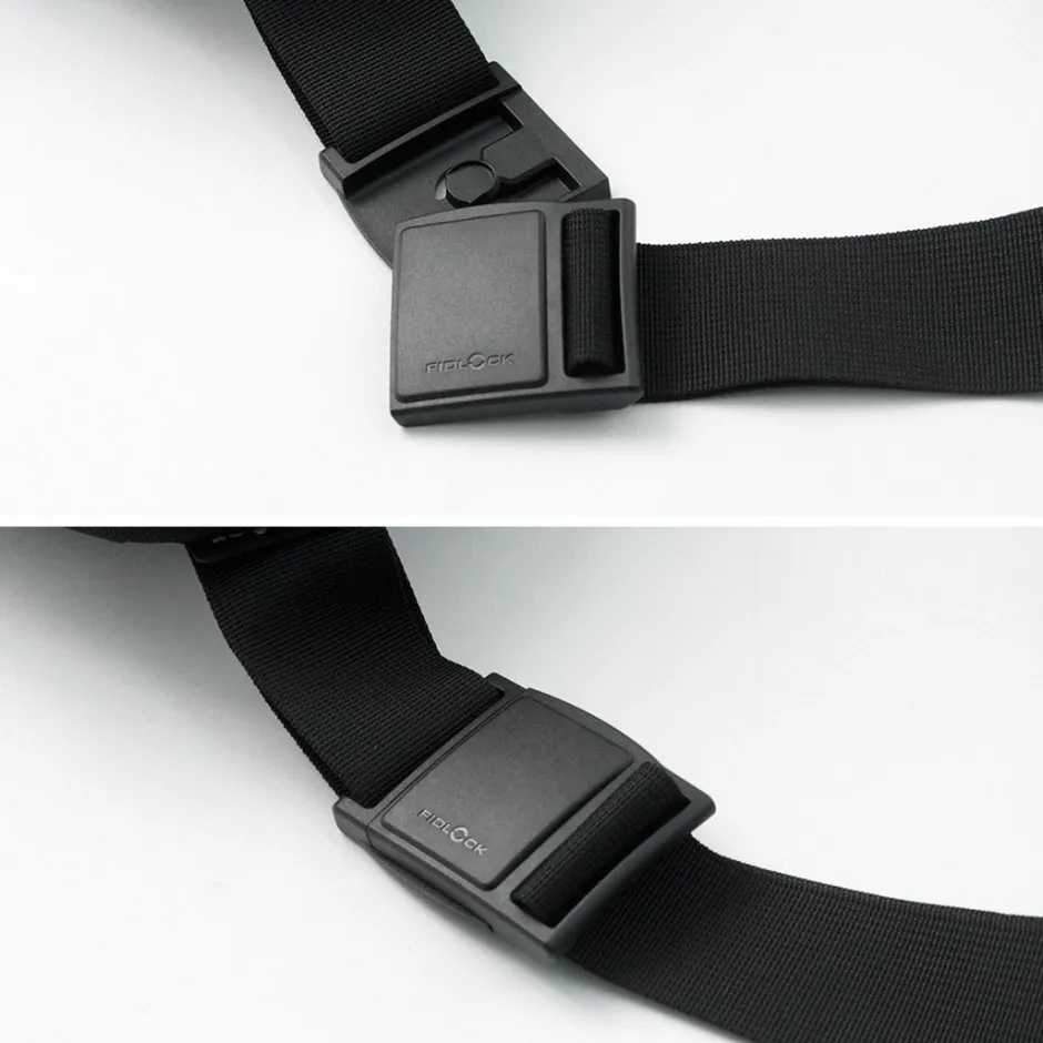 This buckle uses magnets and is a sliding type that can be easily removed with one hand. When fastening, the buckle can be stacked on top or slid over to hold it securely in place. It is a very convenient specification with smooth handling.