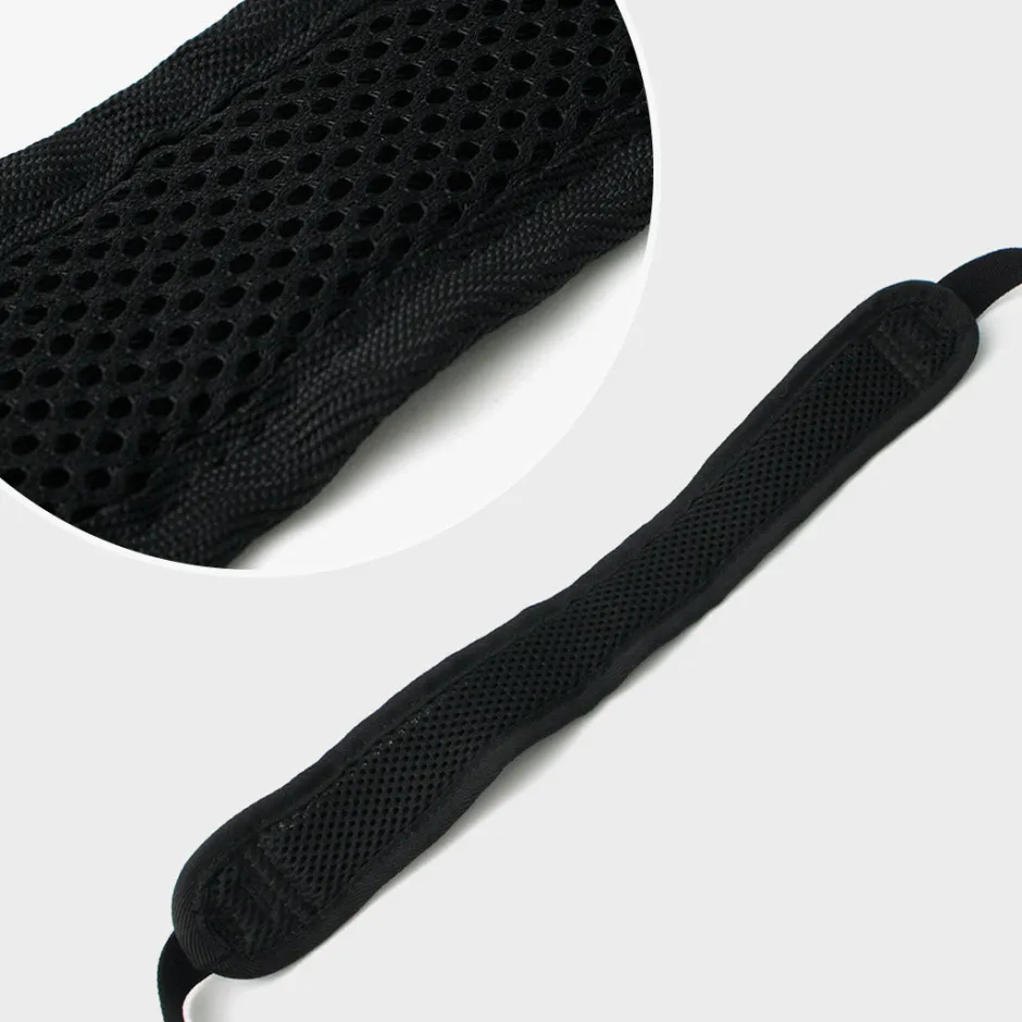 The shoulder belt uses soft mesh material to reduce stress on the shoulders. It is wide and does not dig into the shoulders. The mesh construction provides good ventilation, allowing sweat to escape from under the belt.