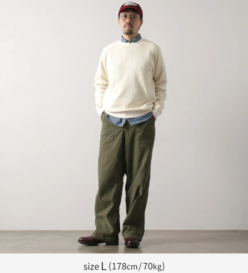 Not only the fabric, but also the details are full of elements reminiscent of vintage items, such as underarm gussets and wide ribbing.Despite its simple design, this is a versatile item that matches layering and casual styling with innerwear showing.