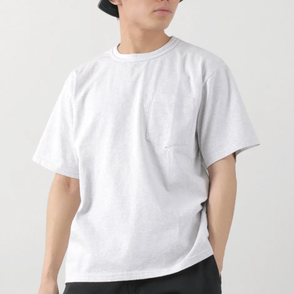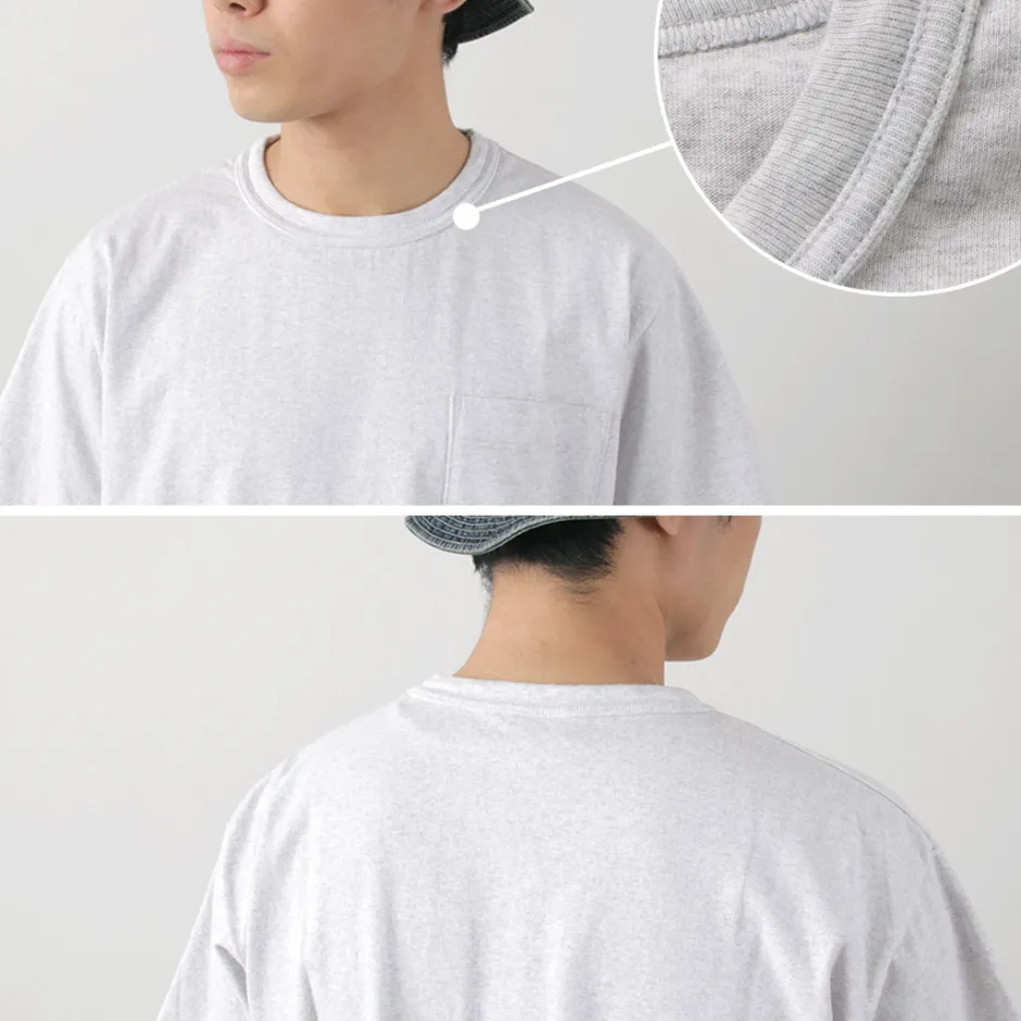 The neckline adopts a high-strength double binder neck. In addition to the binder neck commonly seen in t-shirts, it reinforces the entire neckline with a separate fabric around the outer circumference, effectively suppressing stretching and sagging, which are unavoidable in t-shirts.