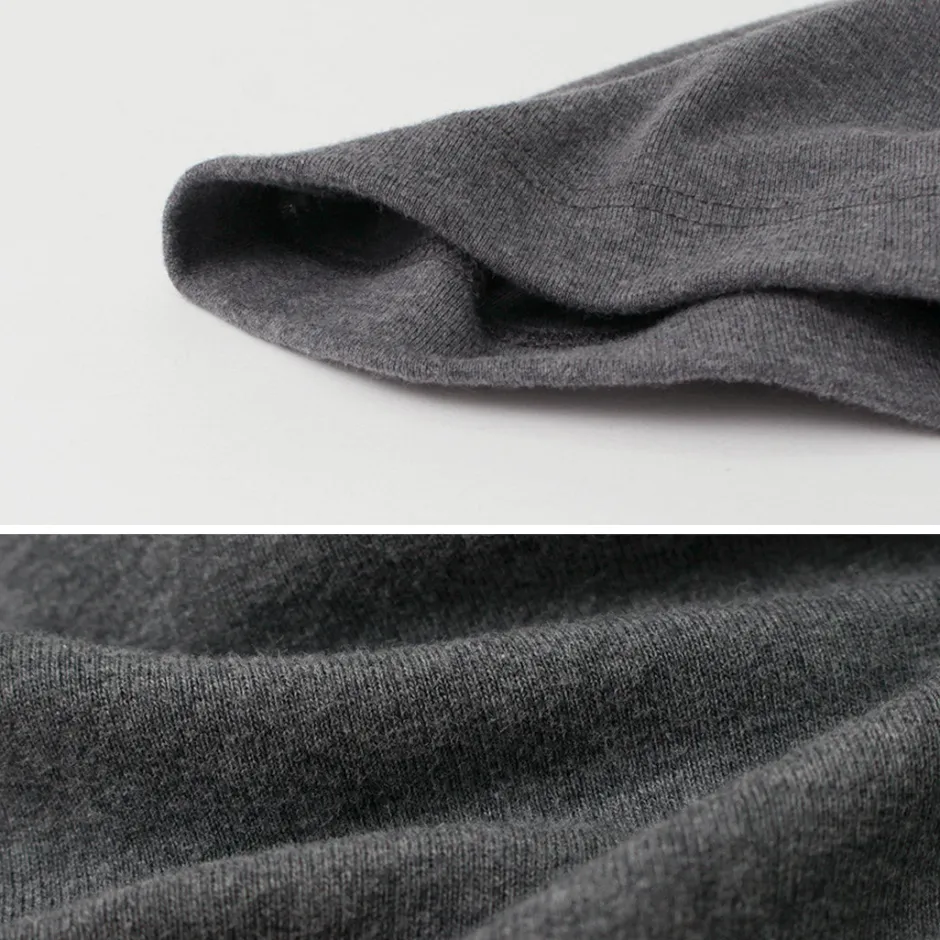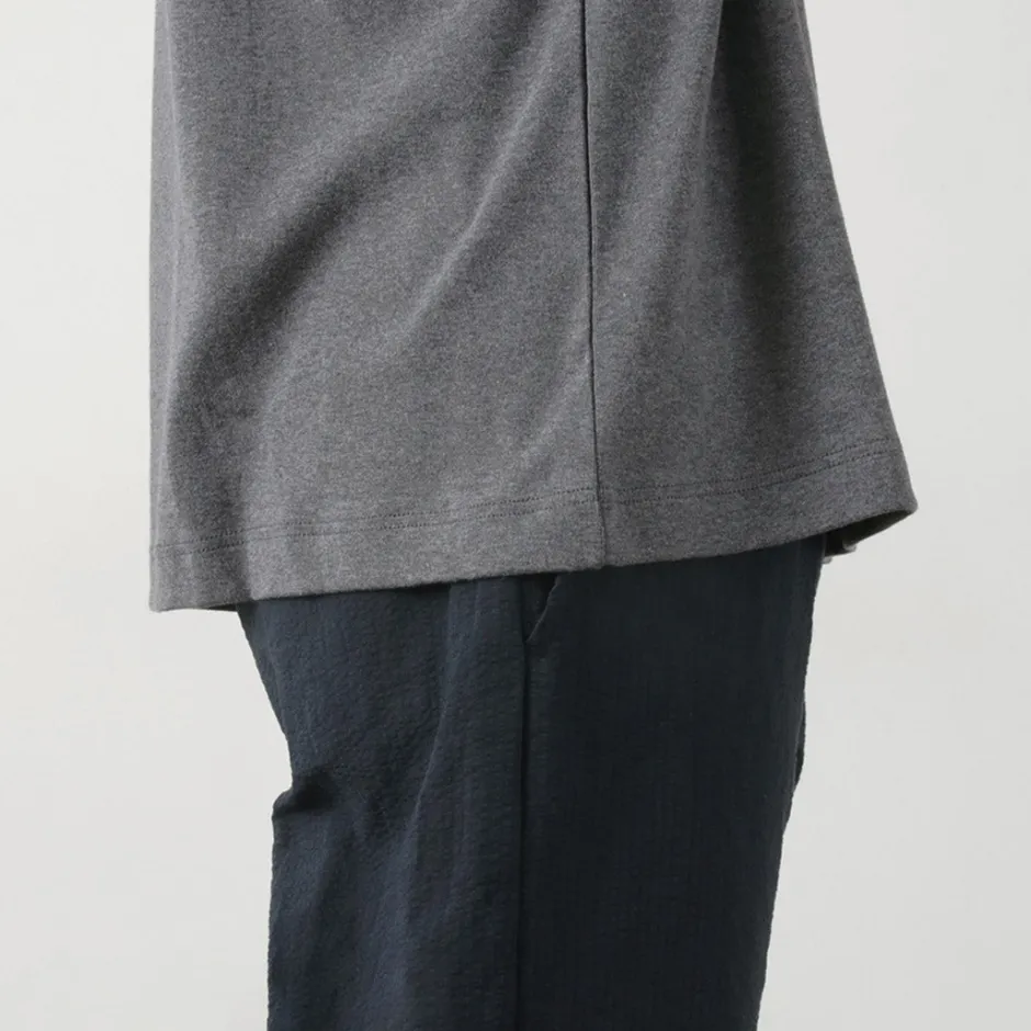 Unlike the ribbed finish on , it features a simple double-needle finish, creating a relaxed silhouette. It’s also easy to use as an inner layer.