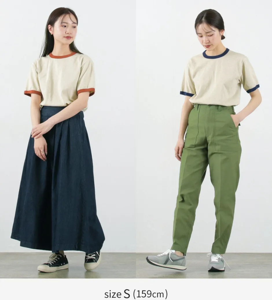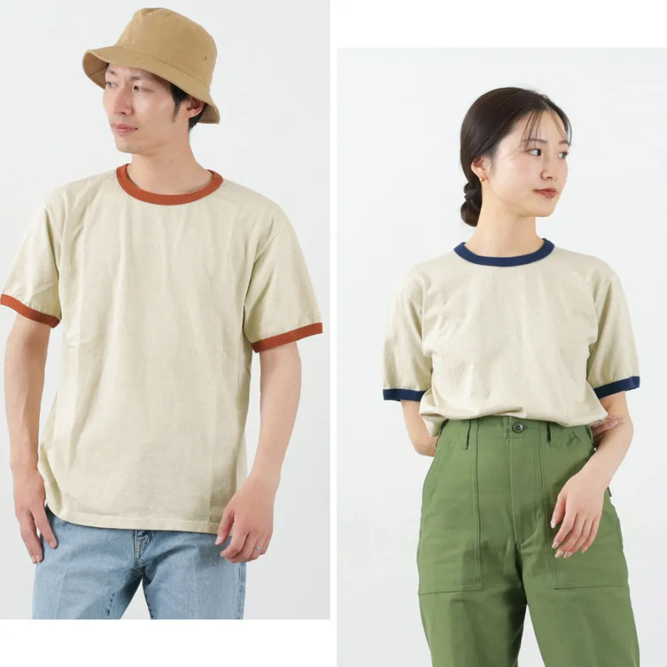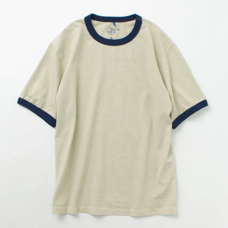 GOOD ON introduces an American casual vintage-style ringer T-shirt. The natural texture of the ecru body is accentuated by the piping ribs at the neck and cuffs.