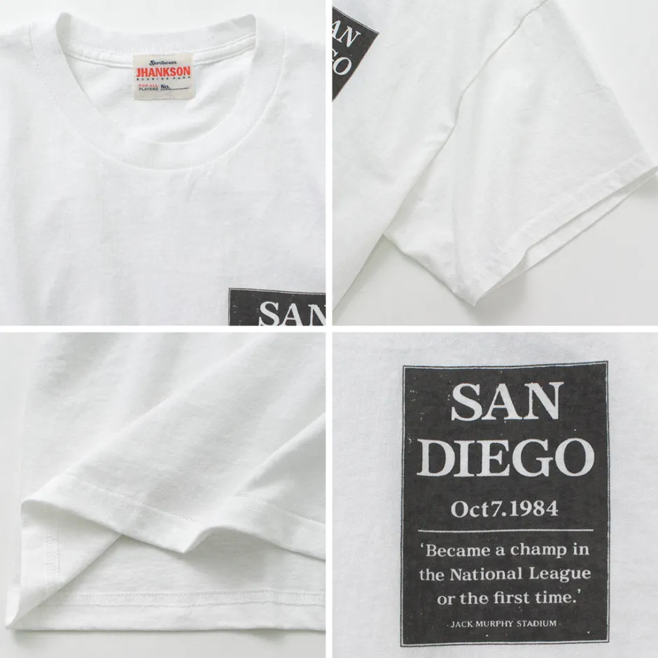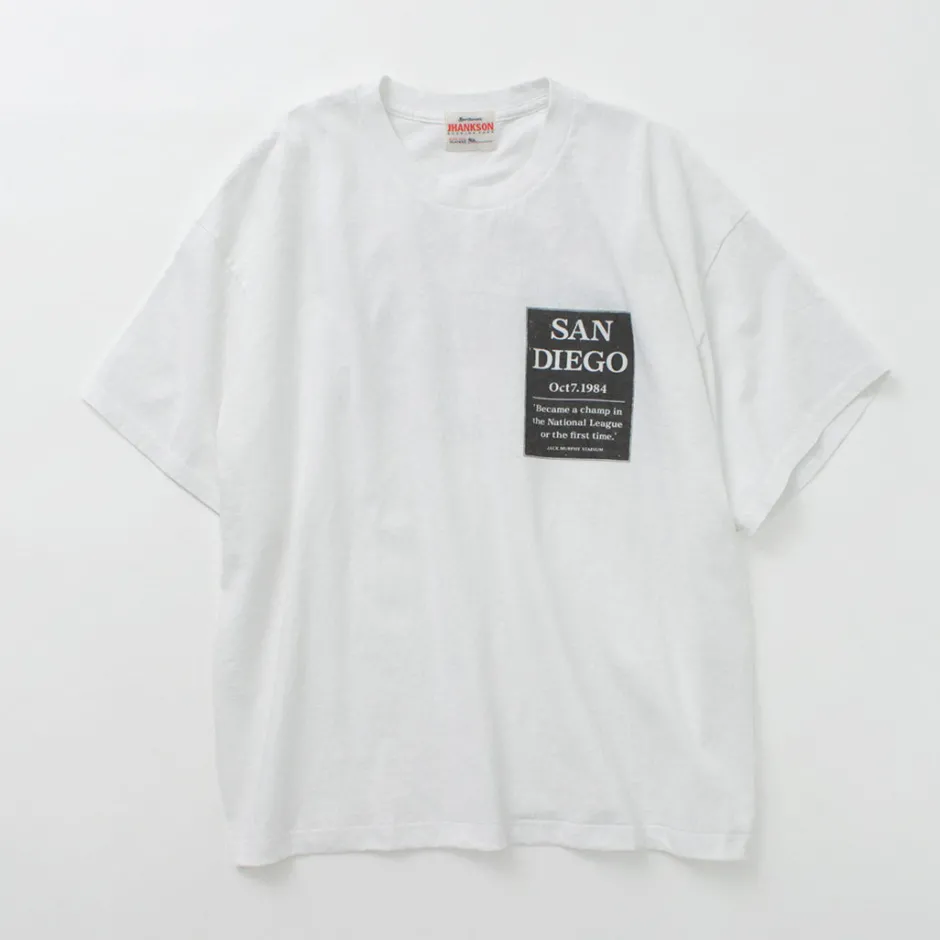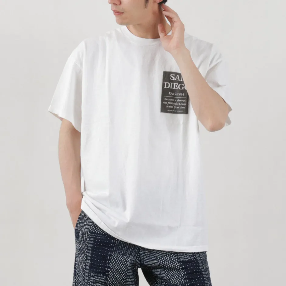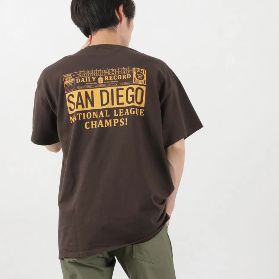 Designed as a fictional commemorative T-shirt inspired by the newspaper headlines of the time when the San Diego Padres won the National League in 1984. The print faithfully reproduces the lettering rubbing and shaking characteristic of old newspapers, which is one of the sticking points.
