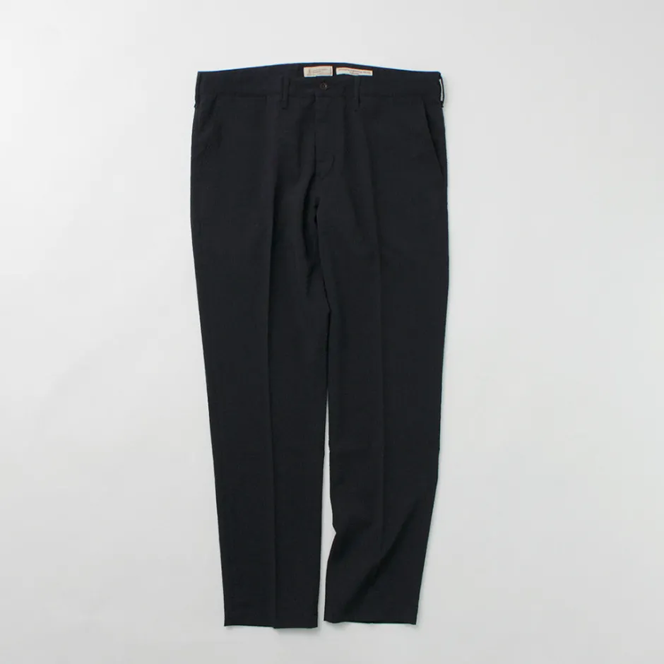 Wearing it as a set-up with matching jacket is also recommended. Especially in business scenes where a jacket is needed during the sweaty season, this seersucker set-up, known for its dry touch and coolness, allows you to wear it comfortably without worrying about stickiness.