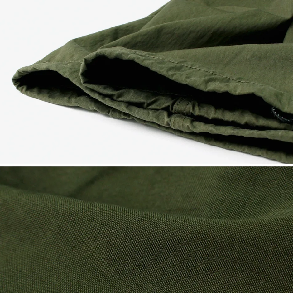 The bold wide silhouette provides a relaxed fit. By cinching the drawcord at the hem, you can achieve a rounded style reminiscent of a balloon silhouette. Tucks at the knee area add to the three-dimensional finish.