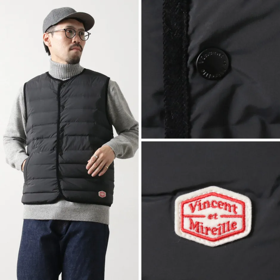 This slim-fitting, smart down vest is typical of the French workwear brand “VINCENT ET MIREILLE”. It is recommended for those who don’t like bulky clothes and want a light down jacket.